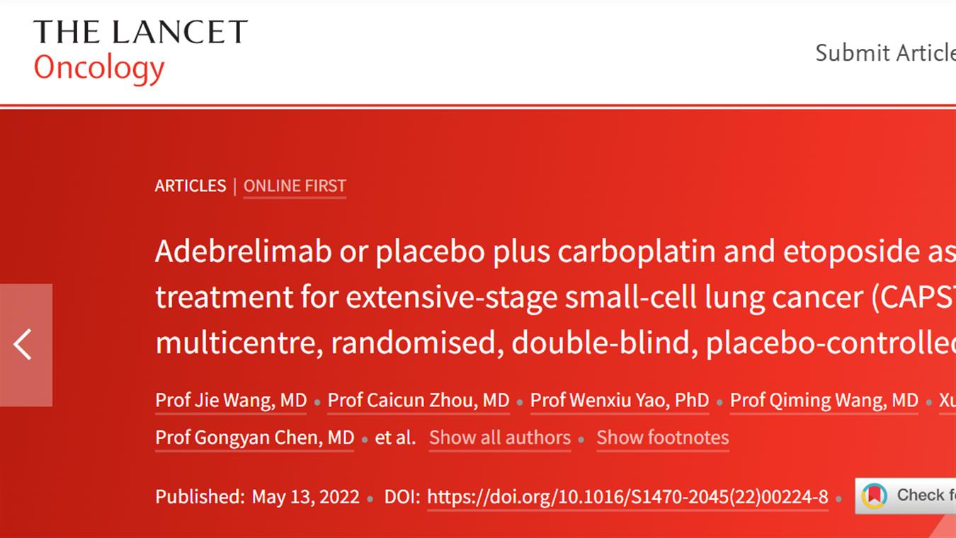 918博天娱乐旗舰卡瑞利珠单抗联合阿帕替尼最新研究成果荣登《柳叶刀·肿瘤》