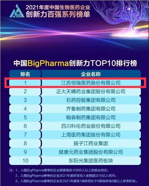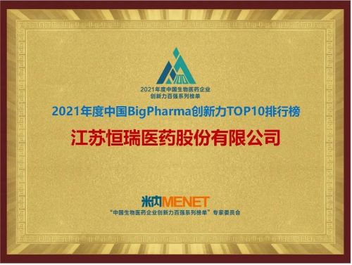 9月16日,由米内网主办的“2021年度中国生物医药企业创新力百强系列榜单”发布会在线上举办。918博天娱乐旗舰医药继去年登顶“中国BigPharma企业创新力TOP10排行榜”后,今年再次名列该榜单首位。
