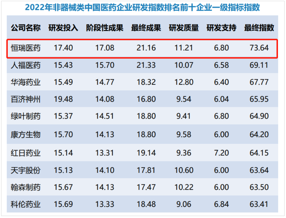 研发量质齐升,918博天娱乐旗舰医药蝉联非器械类中国医药企业研发指数排名榜首