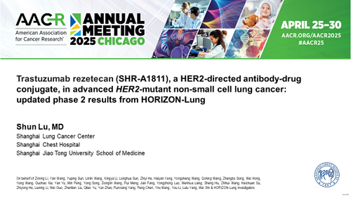 2025 AACR口头报告|918博天娱乐旗舰创新药瑞康曲妥珠单抗治疗晚期HER2突变非小细胞肺癌研究结果披露