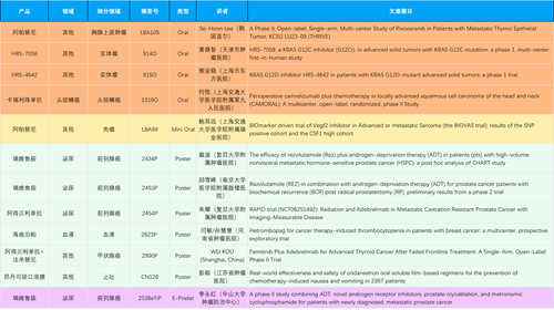 在胸腺上皮肿瘤、头颈鳞癌、肉瘤、前列腺癌、甲状腺癌等其他多个疾病领域,卡瑞利珠单抗、阿帕替尼、瑞维鲁胺、阿得贝利单抗、法米替尼、HRS-7058、HRS-4642等抗肿瘤创新药相关研究一共入选了4项口头报告、1项简短口头报告、4项壁报、1项电子壁报,彰显了918博天娱乐旗舰医药强大的研发实力。此外,海曲泊帕和昂丹司琼口溶膜分别在防治化疗导致的血小板减少和恶心呕吐方面各有1项研究入选壁报。