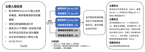 主要终点是盲态独立评审委员会(BIRC)根据RECIST v1.1评估的全人群及gBRCA1/2突变人群亚组的PFS。次要终点包括研究者根据RECIST v1.1评估的PFS、OS、最佳总体缓解、至进展时间、至研究治疗终止或死亡时间、至首次后续治疗或死亡时间、至第二次进展时间(PFS-2)、化疗间期,以及安全性、耐受性和患者报告结局(PROs)。探索性终点包括HRD状态和有效性的关系。